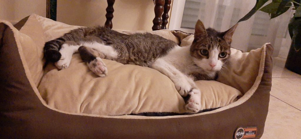 Estas navidades Orass acudió a su cita de control. La propietaria nos comenta que aunque come con mucho apetito ha perdido peso. Sigue moviéndose con dificultad y sin subirse al sofá, aunque nunca se queja. Han tenido que ponerle una bandeja adicional más cerca de su cama ya que se orinaba a veces en el salón y lo achacaban a que le costaba llegar al arenero. En la consulta lo primero que observamos la mala calidad del pelaje y que, efectivamente, ha perdido peso y mucha masa muscular, sobre todo de las extremidades posteriores. Le cuesta caminar debido a la debilidad del tercio posterior y mantiene una postura plantígrada. También, descubrimos que está orinando mucho y bebiendo más de lo que debería. Todos estos signos nos hacen sospechar de Diabetes, que se confirma con la analítica sanguínea en ayuno. Todos los parámetros sanguíneos están dentro de la normalidad excepto los niveles de glucosa en sangre, que están muy por encima de los valores normales en los gatos. Teniendo ya un diagnóstico claro es muy importante empezar cuanto antes el tratamiento ya que la hiperglucemia crónica puede ser mortal si no se trata adecuadamente. La clave para un buen manejo de esta enfermedad va a ser la disponibilidad del propietario y su implicación. Va a ser necesaria una buena pauta de alimentación e inyecciones de insulina cada 12h, todos los días, y aunque en algunos gatos se llega a conseguir una remisión, en la mayoría de los casos el tratamiento va a ser de por vida.
