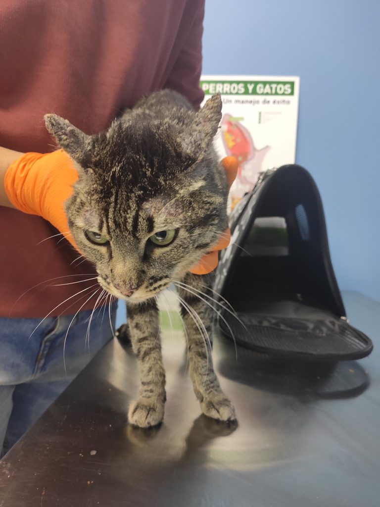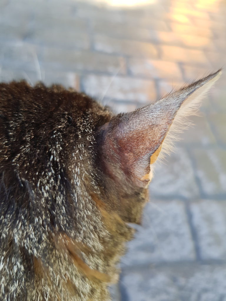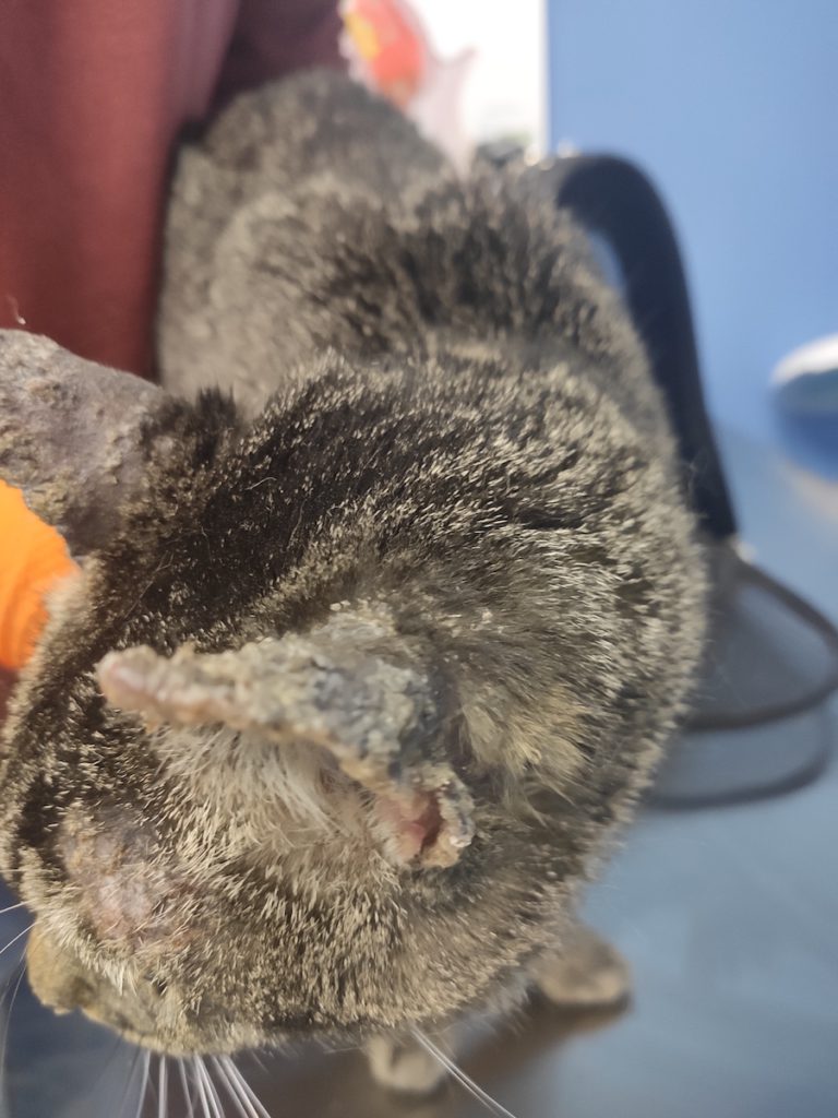Atari es una gatita esterilizada de 1 año y 9 meses, muy simpática y cariñosa. Su propietario, Sergi, acudió muy preocupado a nuestra consulta porque hacía una semana que Atari se rascaba mucho las orejas y le habían salido unas costras muy feas en los pabellones auriculares.