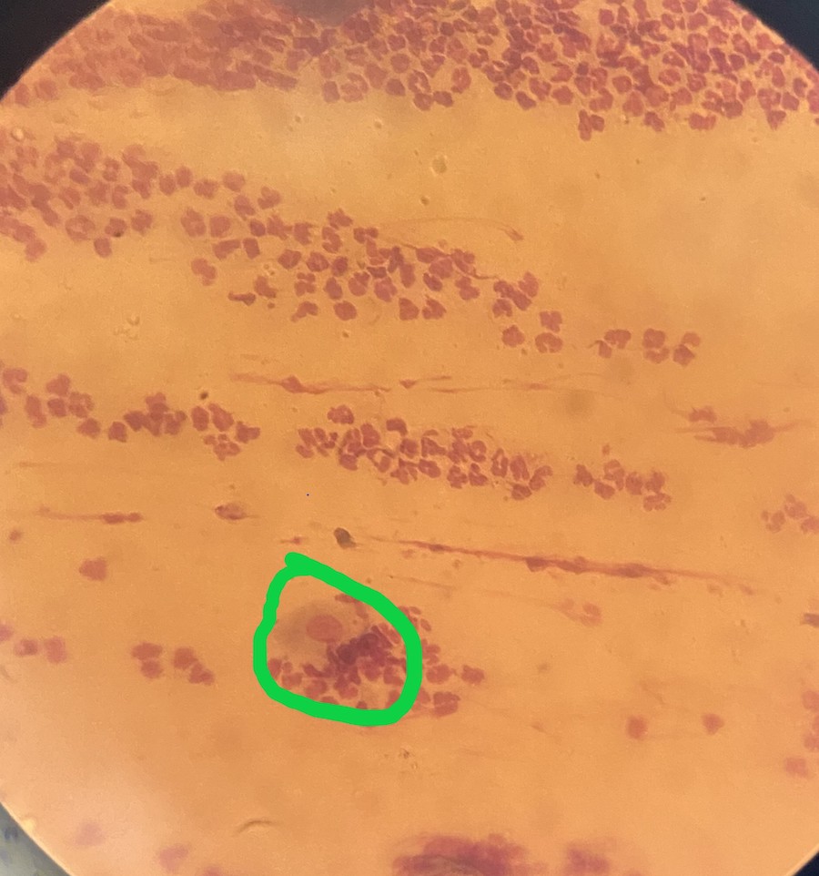 En Clinicanimal Granollers, comenzamos a realizar pruebas de la piel: primeramente, procedimos con un raspado y una citología de las lesiones con costra para descartar una infección y/o parásitos, además de una una citología del interior del oído en busca de una posible otitis. Así, detectamos una otitis por Malassezia(un hongo que vive en la piel y sobrecrece cuando hay inflamación o humedad), pero además, en la citología de las costras encontramos algo sorprendente: no había bacterias, pero sí unas células denominadas “acantolíticas”, muy redondeadas y con un núcleo prominente. Estas células proceden de la piel, pero no han sufrido un desprendimiento normal, sino que “algo” lo ha provocado… y enseguida nos saltaron todas las alarmas, ya que encontrar estas células suele ser muy sugestivo de una enfermedad autoinmune llamada “PÉNFIGO FOLIÁCEO”.