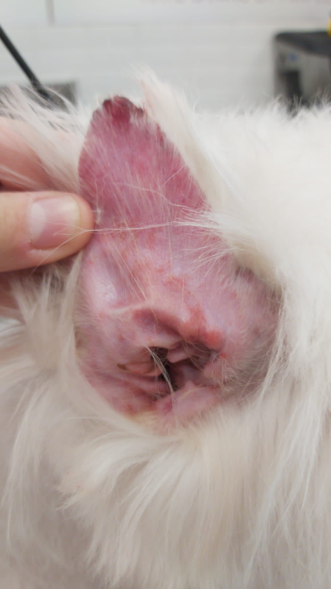 José Luis, que se involucró muchísimo desde el principio, ha estado acudiendo día a día a la consulta para aprender a inyectar la medicación a Ori, y a día de hoy se apaña perfectamente solo. Por su parte, Ori está tolerando muy bien el tratamiento, su piel y sus orejas están mucho mejor y en unas semanas realizaremos la analítica de control para comprobar si los niveles de infección se han reducido.