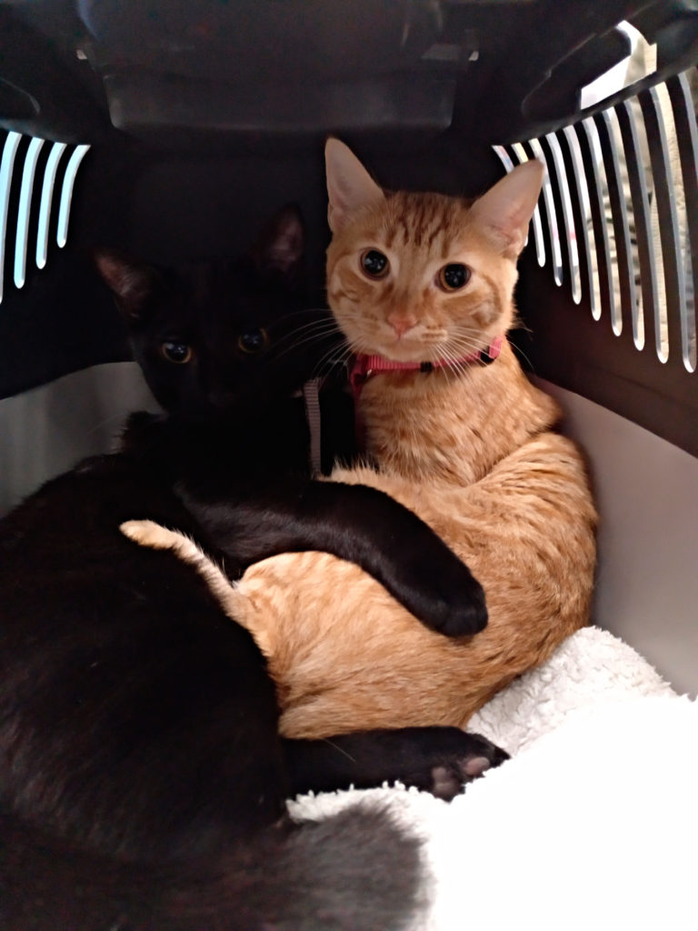 Os presentamos a estos dos cariñosos y adorables hermanitos de 6 meses de edad. Murdock (el negrito) y Bastet (la naranja) fueron adoptados por una ilusionada pareja hace unos meses y por suerte para ellos, pudieron irse juntos a una misma familia.