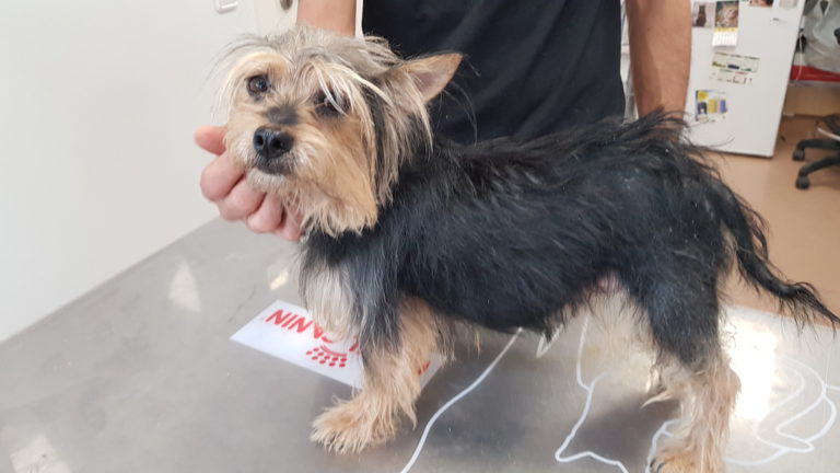 SCOOBY es un perro mestizo, macho no castrado de 10 años de edad, que acude a la clínica de Guadacorte...